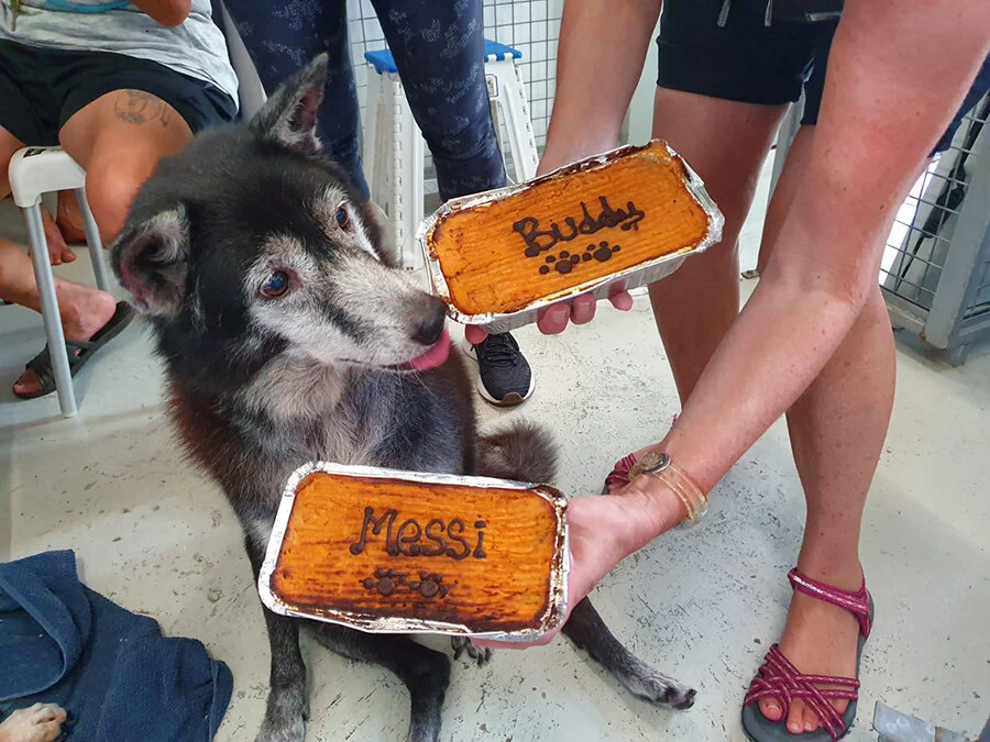 Gypsy checking out the shepherd’s pie shelter donation drive from The Barkery earlier this year.